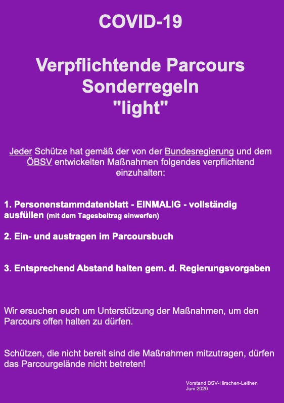 Im Zusammenhang mit der Coronakrise sind seitens der Bundesregierung und des ÖBSV Vorgaben bzw. Richtlinien erlassen worden. Wir waren als Betreiber der Bogensportanlage dazu verpflichtet und dafür haftbar, diese einzuhalten.